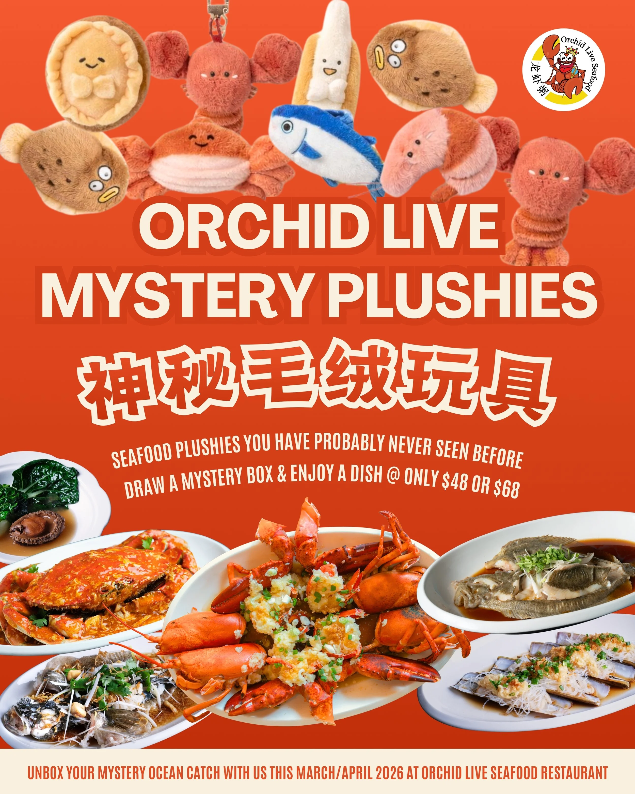 这个季节,除了鲜活海鲜,Orchid Live Seafood 也为您带来情绪支持毛绒公仔用餐优惠活动。