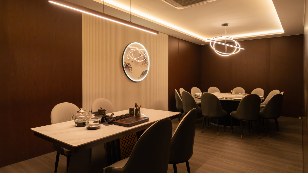 我们的私人包间可舒适容纳 12 位宾客,设有一张品茗桌,专为喜爱茶韵的宾客而备。空间紧邻主用餐大厅,却独享一隅私密与雅致,非常适合私密聚会或特别时刻。 -